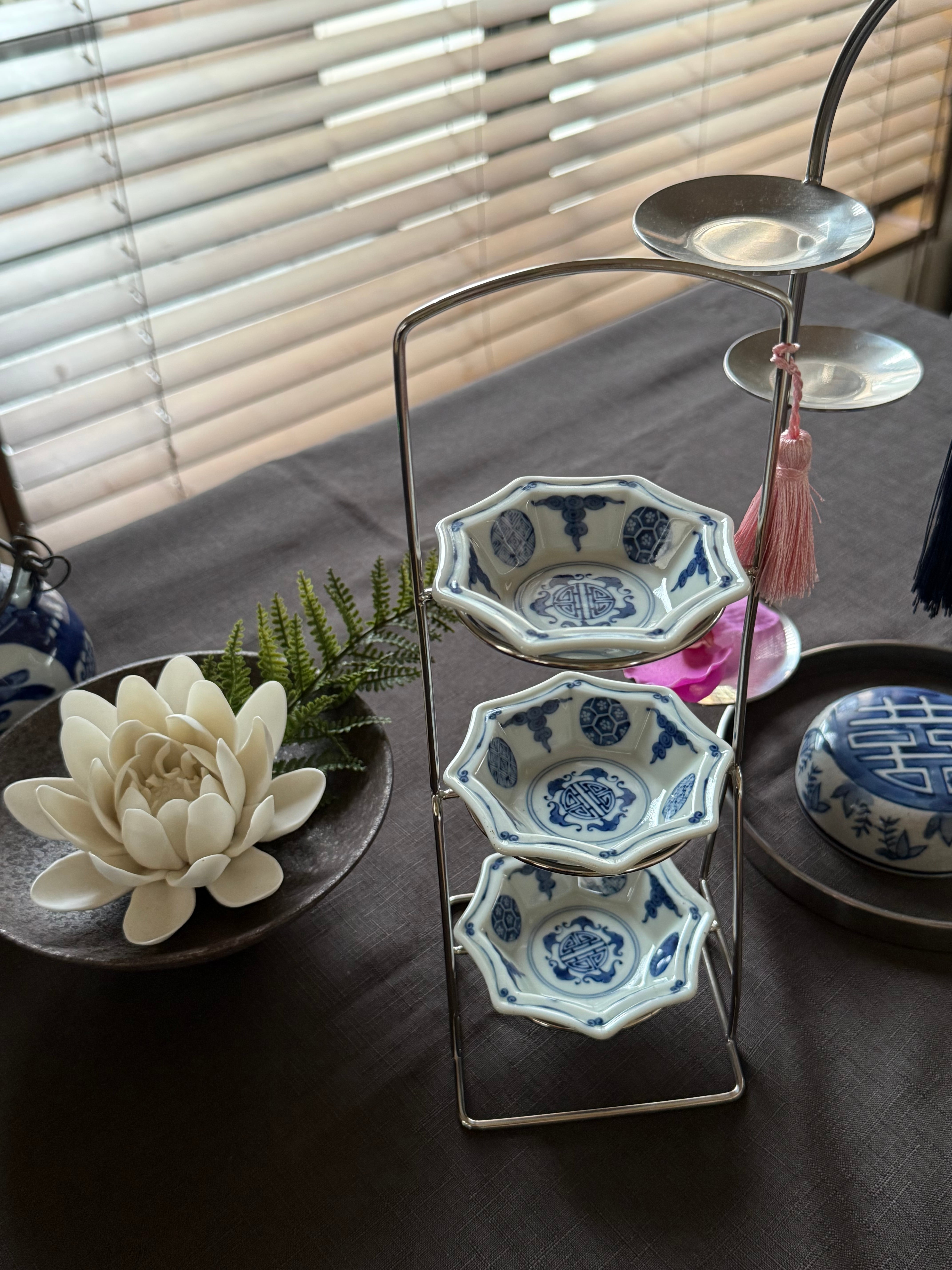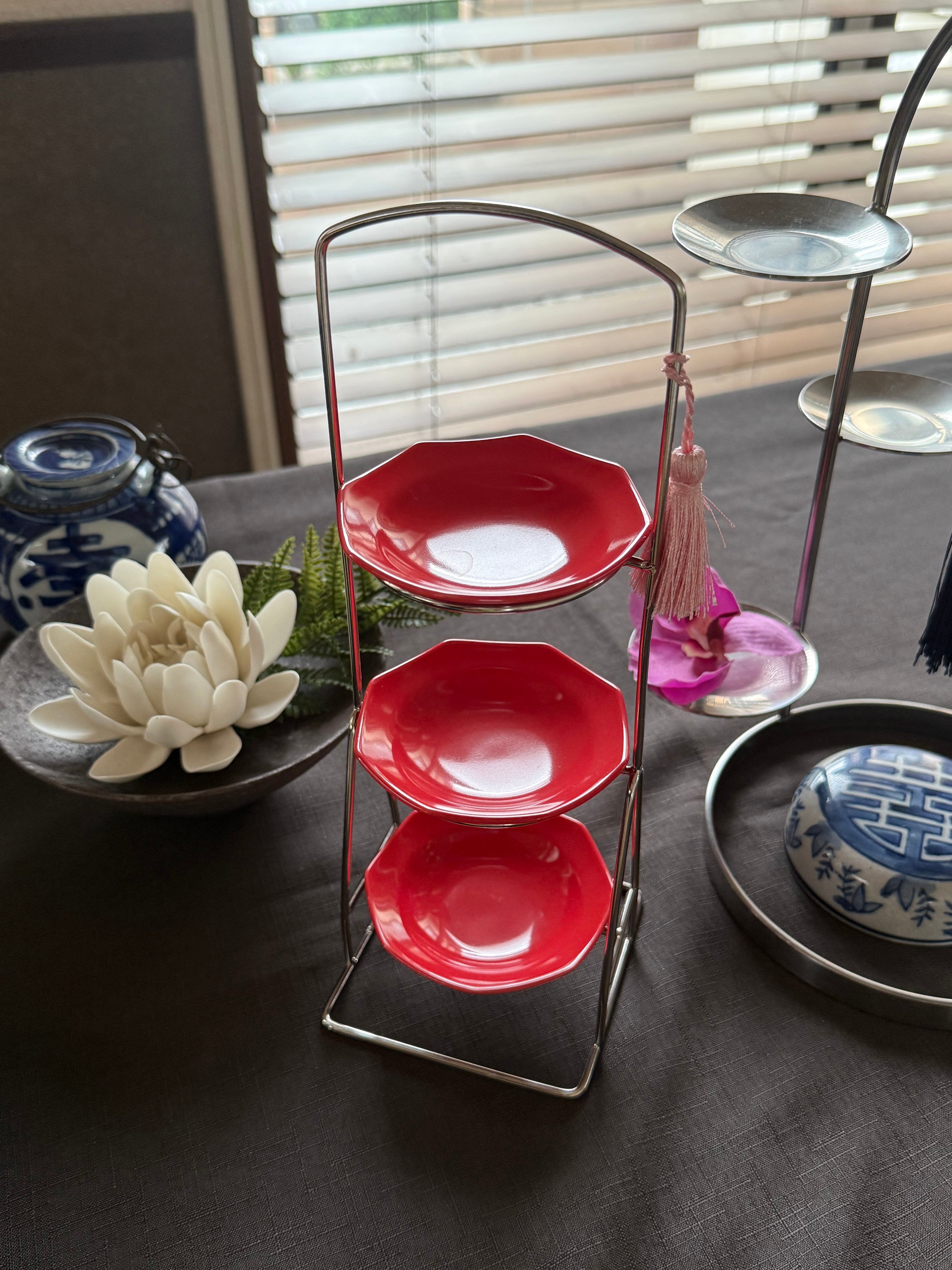 前菜やスイーツなど、3段に盛り付けて華やいだおもてなしができます。