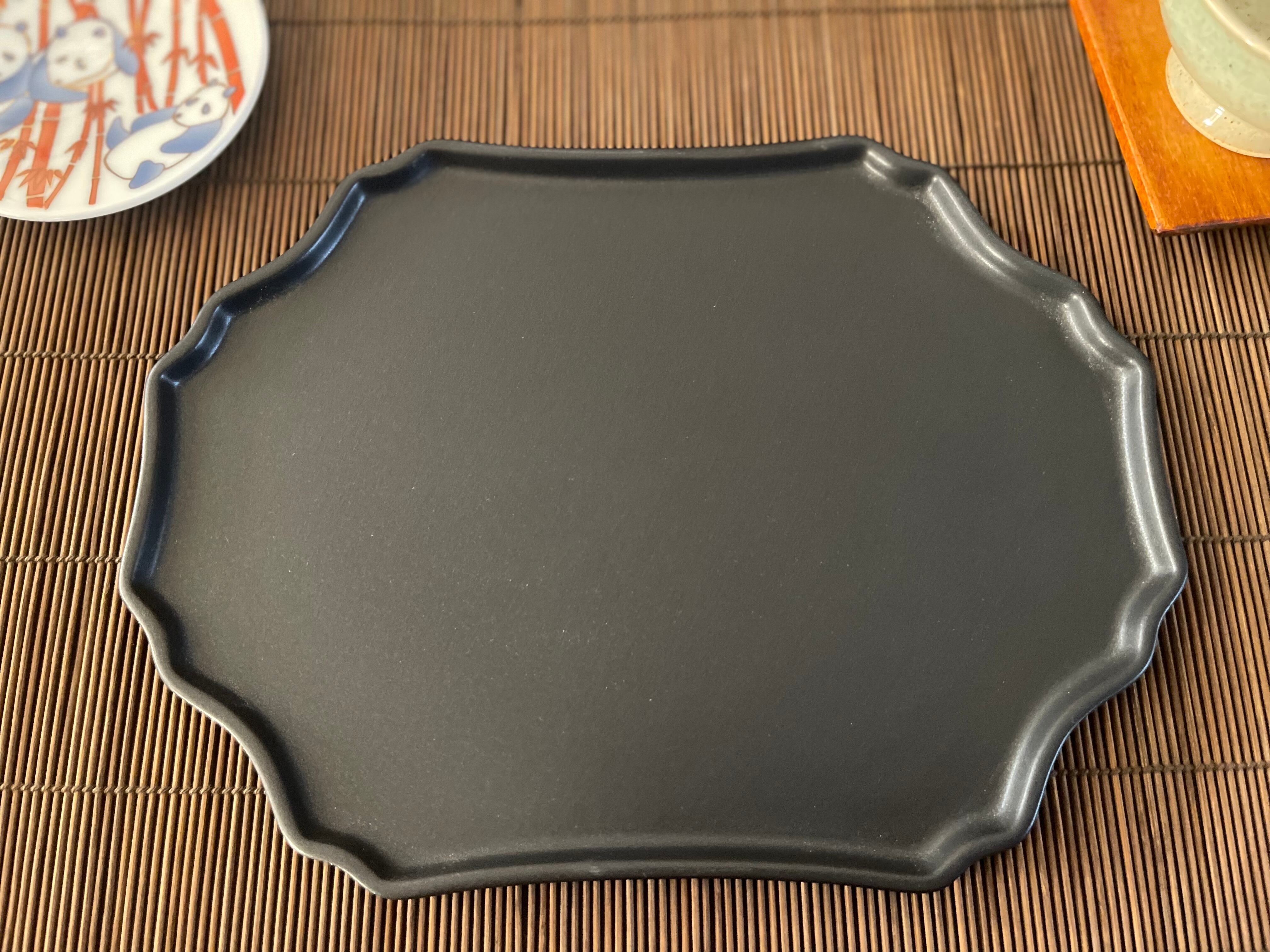 形に特徴のあるプレートは、盛る食材で印象が随分変わります。